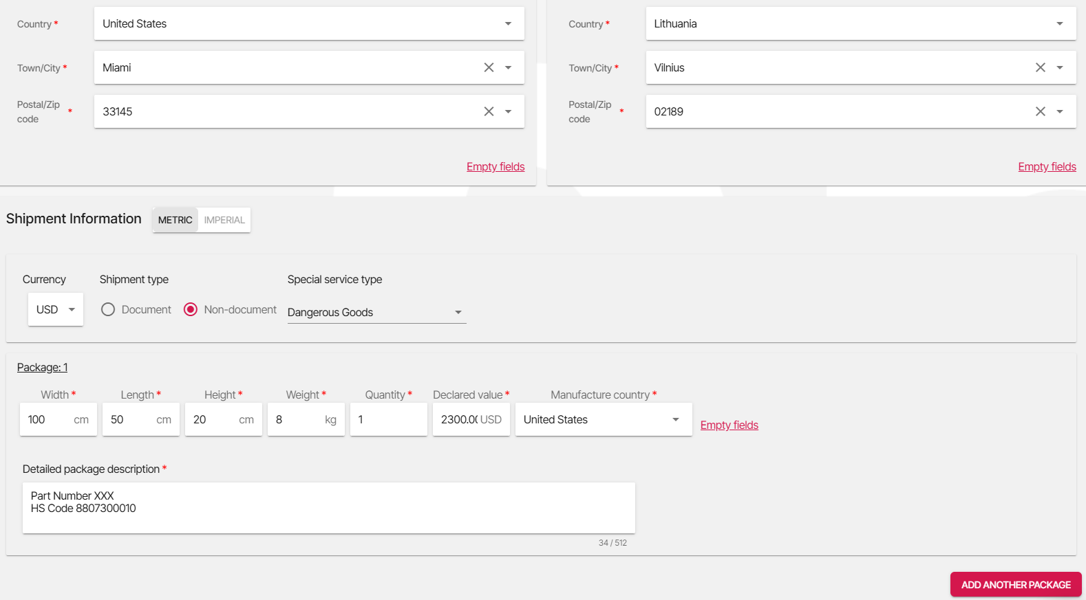 We cover all global destinations with our services, except for domestic shipments within North America.